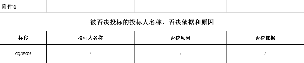 4.被否决投标的报价人名称、否决依据和原因