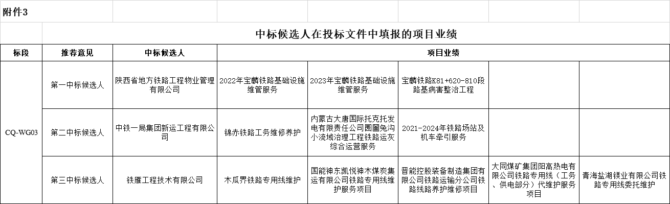 凤翔长青铁路专用线凤翔Ⅲ场铁路基础设施维管服务(第二次)招标结果公示