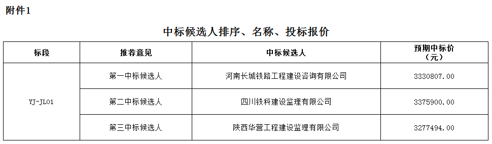 新建城际铁路阎良至机场线控制性工程站前工程施工监理服务在国内进行公开招标。项目法人陕西西阎城际铁路有限公司组织完成了评标工作,现将中标候选人单位公示如下: