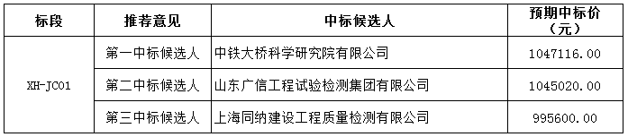 新建城际铁路西安至韩城线控制性工程站前工程第三方试验检测招标在国内进行公开招标,项目法人陕西西韩城际铁路有限公司组织完成了评标工作。现将中标候选人单位公示如下: